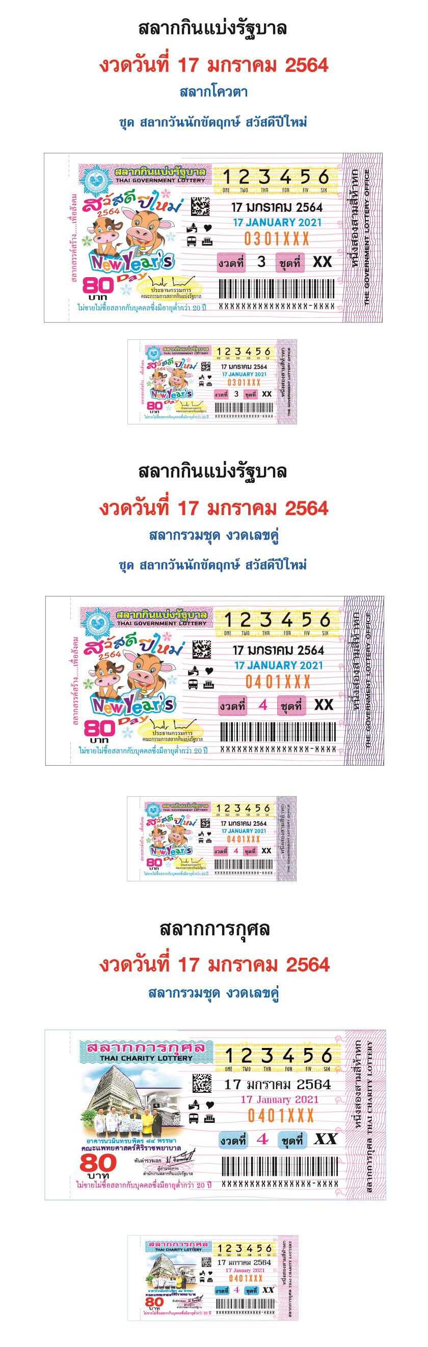 ตรวจผลสลากกินแบ่งรัฐบาล ตรวจหวย งวดประจำวันที่ 17 มกราคม 2564 รางวัลที่ 1 รางวัลละ 6,000,000 บาท